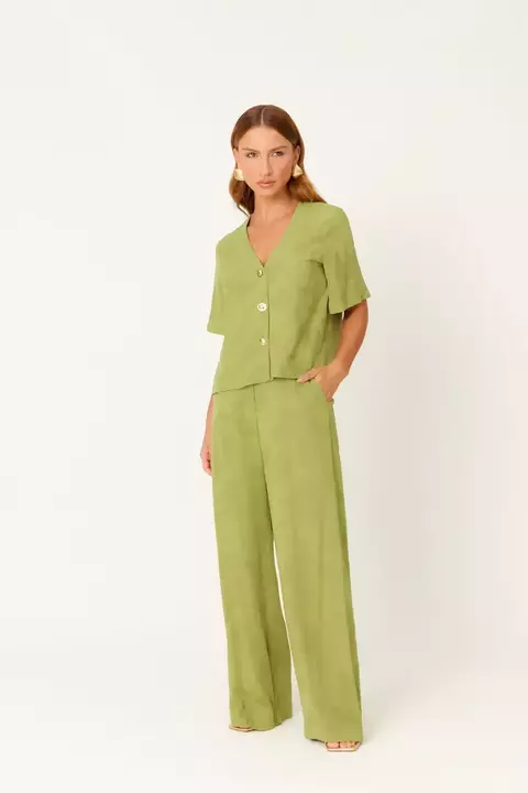 Calça Pantalona Verde em Tecido Texturizado